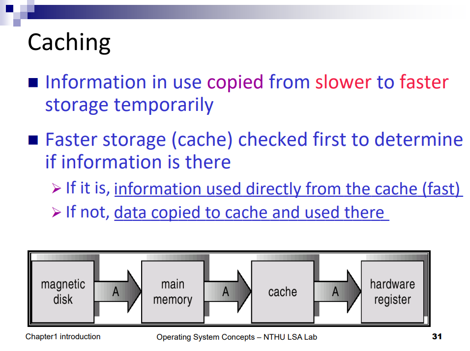 所以 cpu 要資料時會先去 register 找,沒有的話再往下一層找;但讀回來的時候會被 Cache 住,所以會需要 cpoy 它,因此會比沒有 Cache 還慢