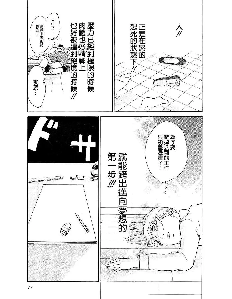 但上了大學後她卻提不起筆了,渾渾噩噩的過了四年就突然要面臨出社會的問題,中間雖然老師有來探訪她,帶了酒準備聊聊天,卻因為她當時的生活習慣導致錯失了這次機會。 畢業後暫且回了老家,老爸給她介紹了個公司,她進去後馬上確信自己不適合,看著眼前的螢幕開始在思考人生,發現自己努力了這麼久,考上了美術大學,卻始終都沒有開始畫漫畫,結果痛苦拉扯了一陣子後,她終於拿起了筆開始了畫漫畫